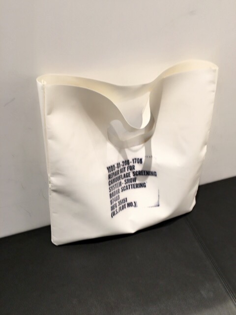 店長さん?が軍モノの素材を手さげ風にしましたと得意げ。