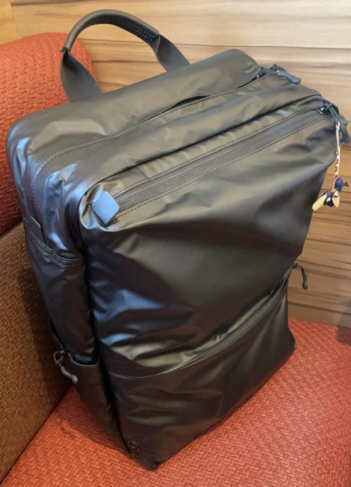 リュックなのに底鋲付き(自立!)、防水、モバイルポーチ付き、側面のドリンクポケットが拡張式!しかも軽量ときたもんだ!