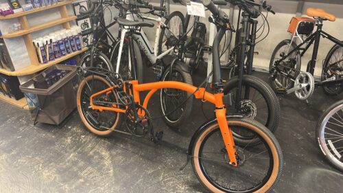 この車種は折りたたみ自転車の定番でありつつも常に進化を遂げていてそのおすすめを聞きつつ変速ギアを交換された車種をメンテナンス中に試乗させてもらった。