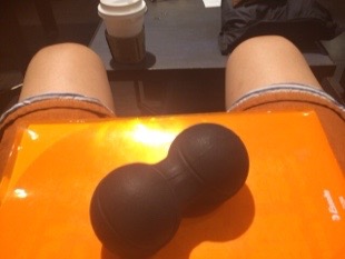この黒いやつシートと背中に挟みセルフマッサージです。(車移動だったので持ち歩いていたのです、、スタバでマッサージなんて、笑)