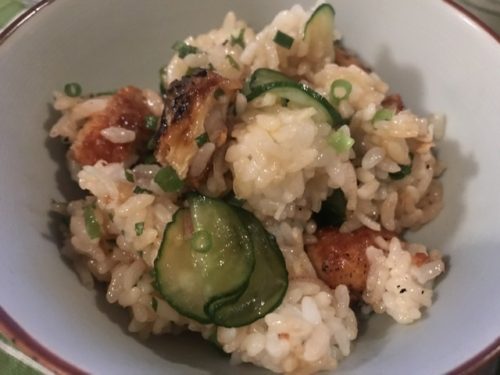 ウナきゅう。人生で初めてたべた!うなぎときゅうりがこんなに相性良いなんて☆(あとみょうが、ネギ、山椒)
