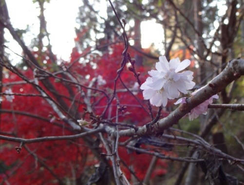 アッで思い出したこの写真、Facebookにも載せてしまいましたが、紅葉みてたら桜が!です。