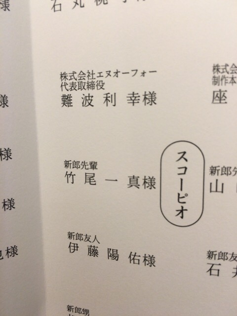 2006〜2008まで出演させていただいた『bambino』という舞台シリーズで一緒だった寿里と小野麻亜矢さんの結婚式にお招きいただきました。
